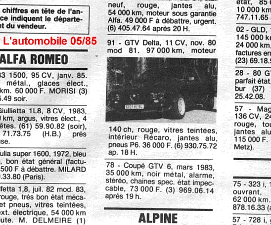 évident à trouver une alfa GTV delta,