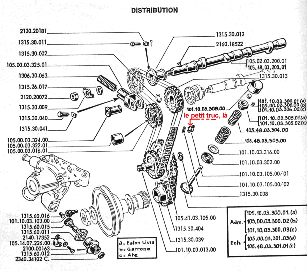 Attention, galère : côté mains dans le cambouis, la précédente 2000 GTV était une aimable mise en bouche. Si ,de base, le 2 litres Alfa s'avère robuste et fiable, cette version poussée (+ 18 ch DIN) est devenue caractérielle, avec une plage d'utilisation catapultée entre 5000 et 6500 tours (au lieu de 4000/5300) et un couple en diminution. Ce comportement vilainement pointu est du au montage d’arbres à cames à levée haute, avec un diagramme très croisé. Avec une mécanique rageuse et la sonorité du pot Sebring, comment ne pas tirer dessus en permanence ? Impossible. Bilan des courses, au moins deux joints de culasse grillés. Plus grave, les compressions s'évanouissent rapidement. Une seule solution alors, refaire la segmentation complète. Tant que l'équipage mobile est déposé, j'en profite pour changer les coussinets de bielles et de vilebrequin. Hélas, lors du remontage, j'oublie une toute petite pièce dont, pourtant, je connaissais bien l'importance : le maillon central de chaîne de distribution. Ce qui devait arriver est donc arrivé et la chaîne a cassé net à la première montée en zone rouge, à la fin d'un soigneux rodage. Retour sur le métier pour une réfection complète de la culasse, avec surfaçage et remplacement des guides et des soupapes. Malgré ça, la consommation d'huile reste fabuleuse, avec des volutes bleues au lever de pied et des émanations dans l'habitacle. Frustrant. Autre tare du moteur du à sa distribution : le refus chronique de démarrer à chaud. En dépit d'incessants réglages de carbus, de calages d'allumeur et réglages répétés des jeux de soupapes, je n'en serai jamais venu à bout. Du coté de la boite de vitesse, ce n'est pas la joie non plus. Elle est montée à l'arrière, accolée au pont, pour une meilleure répartition des masses. Soit. C'est chouette pour le circuit, mais le guidage du levier est d'une imprécision diabolique. Un acheteur potentiel de ma voiture en repartira même complètement écœuré. Décidé d'y remédier, je confie la voiture au garage..., concessionnaire réputé d'Athis-Mons, lui commandant aussi de refaire la synchro qui, bien sur, avait lâché. Et un petit réglage moteur, tant qu'on y est. Le souvenir que je garde de cette intervention est cuisant : une facture équivalant pratiquement à un mois de mon salaire de l'époque. Pas dégoûté des alfa pour autant, je rêve maintenant de GTV 2.5 V6 . Encore faudrait il que je réussisse à revendre ma bête de course...