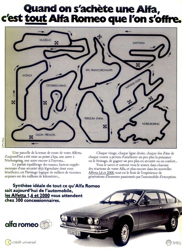 une horloge. En dépit de l'incroyable galère qu'elle a été pendant près de 42000 Km, c'est avec une certaine nostalgie que je l'ai revendue en Janvier 1987 : virus alfa ? Laissée en Dépôt-vente chez Fernand, elle a trouvé un dernier fanatique qui l'a achevée en une semaine, une bielle ayant traversé le bloc moteur... |
