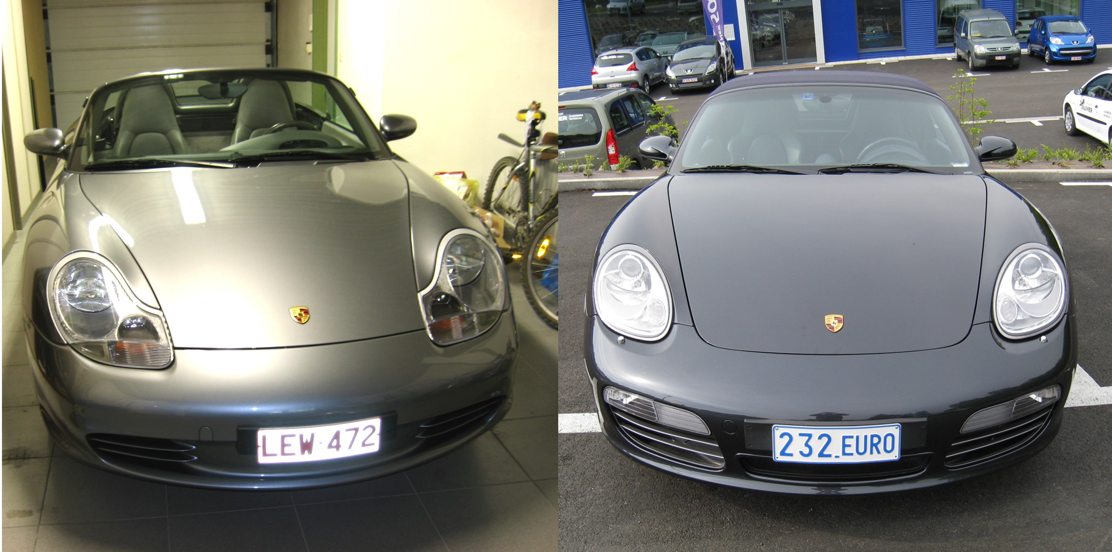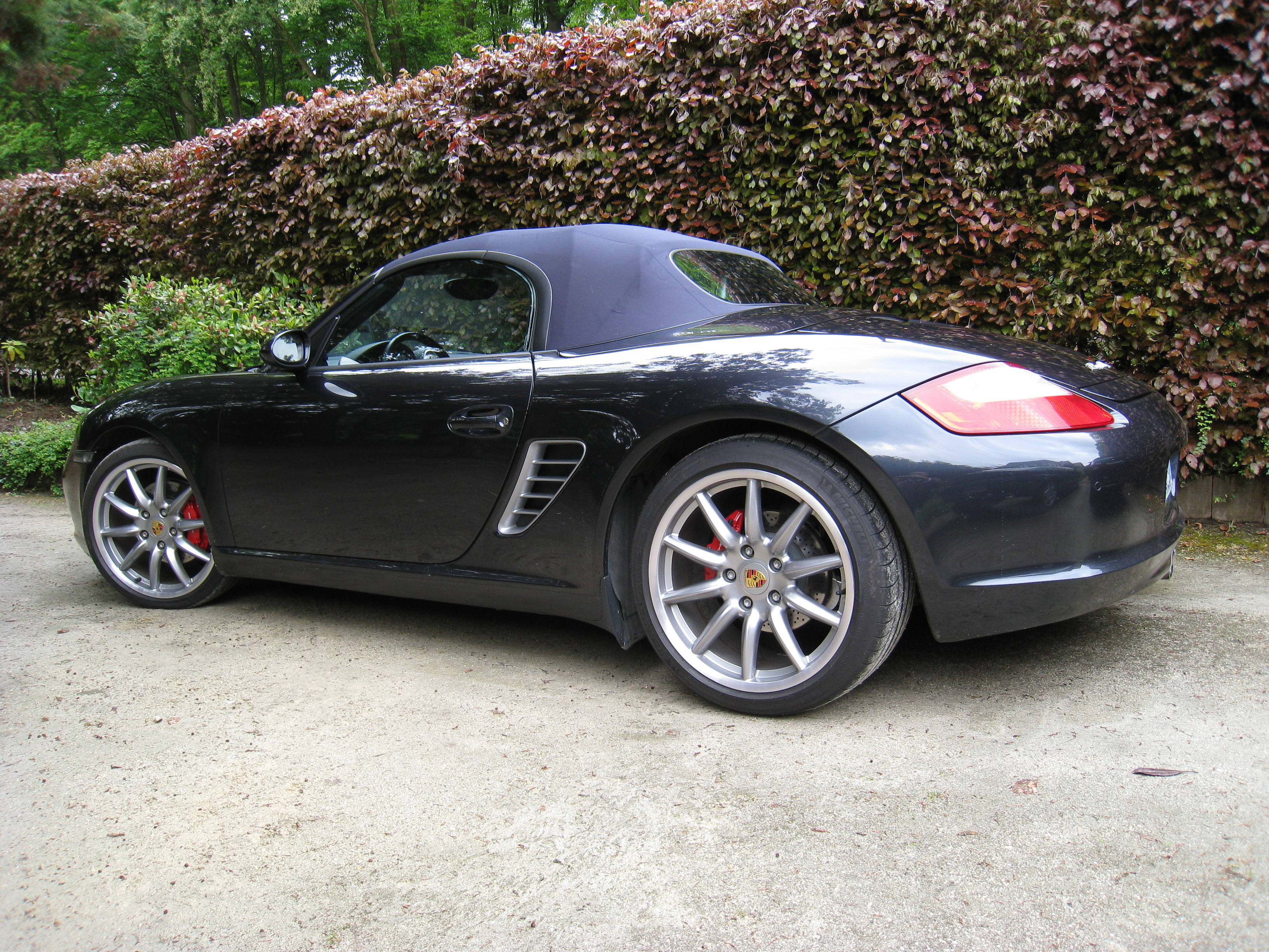 6 Mai 2010: alors que je lorgne depuis deux ou trois semaines un beau Boxster S au fin fond de l'Allemagne (Chemnitz), j'en trouve un à Anderlecht, 840 Km moins loin; essai et transaction dans la foulée, pour mon anniversaire. C'est une 987 3.4 S qui a 30.600 Km et 4 pneus neufs. Sortie de chaine en Août 2006, elle a été utilisée pendant 6 mois comme voiture de direction par Porsche Drogenbos avant d'être officiellement mise en circulation le 22 Février 2007.